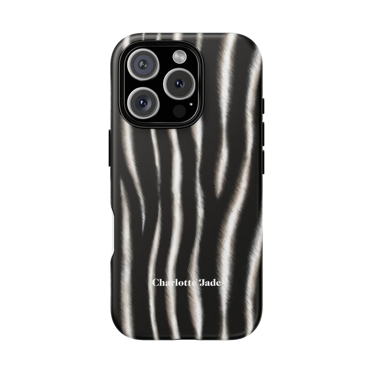 Inspired by the striking natural markings of the African Zebra, this hand-drawn design pairs fine detailing with a classic monochrome palette for a look that’s both bold and refined. The realistic texture and clean lines give it a modern, glamorous edge. Built with a tough polycarbonate shell and a soft TPU lining, it’s got double the protection. The matte finish keeps things sleek, while open ports make staying connected easy. Protective, stylish, and a little wild — this case is the perfect blend of fashion and function!