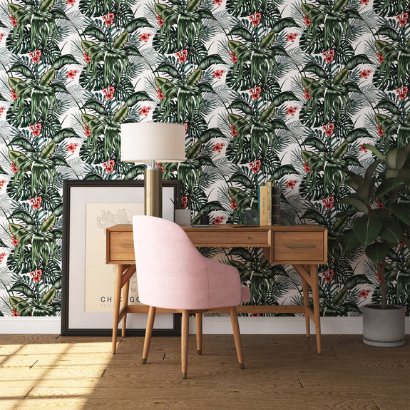 The intricate details of our Botanical Garden pattern creates depth and texture to submerge you into a beautiful and tropical paradise. By combining a range of lush and exotic plants with a pop of bright pink flowers, this pattern is perfect for brightening up your interiors and creating an exciting space with a splash of nature.