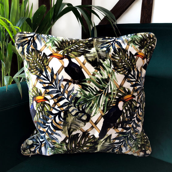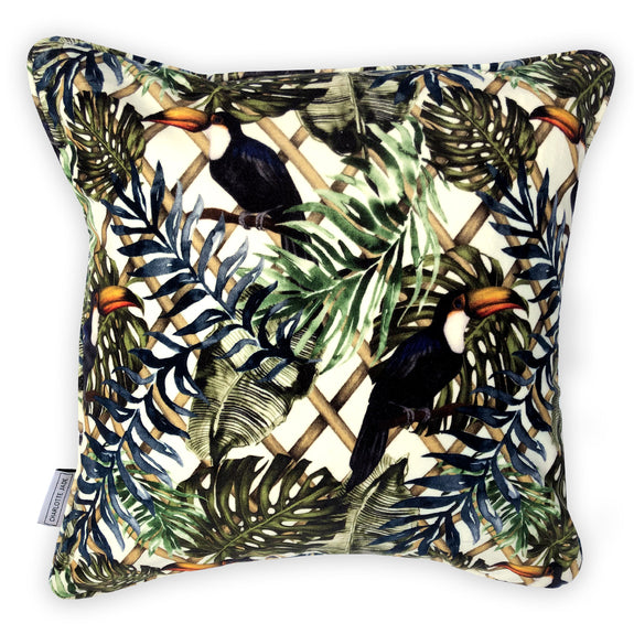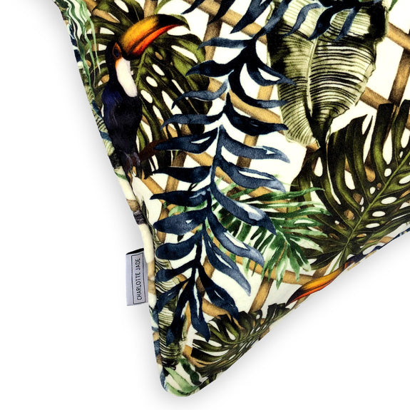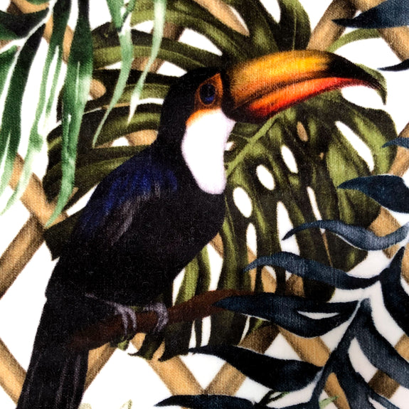 Wild Garden is inspired by the combination of a wild, tropical jungle with the more confined but ambitious British back garden. The rigid geometric pattern of a typical English garden trellis contrasts dramatically with lush green jungle foliage, combining two landscapes that are worlds apart. Perching in the canopy is the beautiful exotic Toucan, bringing warmth to the design with the rich colours of its impressive and distinctive bill. Wild Garden is one of our signature patterns and this design really brings the beauty of nature into your interiors.