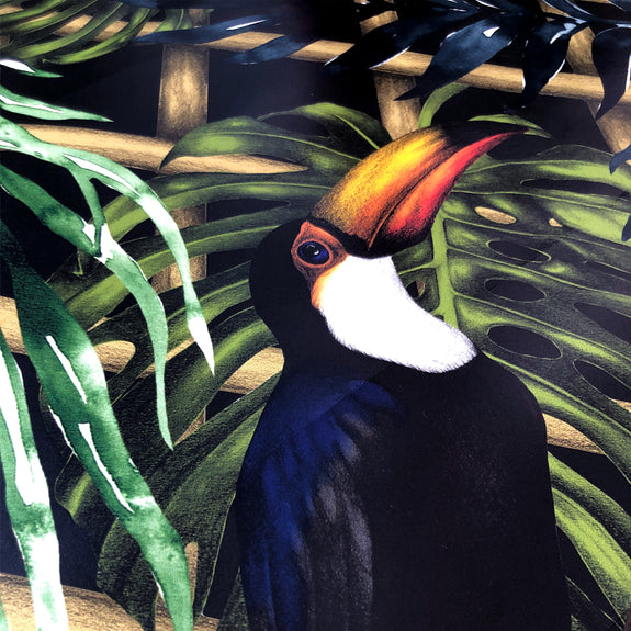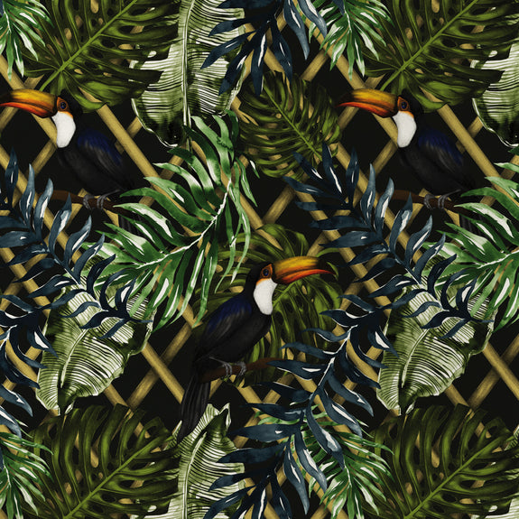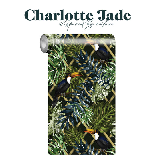 Bring your interiors to life with luxury Charlotte Jade Wallpaper. Wild Garden is inspired by the combination of a wild, tropical jungle with the more confined but ambitious British back garden. The rigid geometric pattern of a typical English garden trellis contrasts dramatically with lush green jungle foliage, combining two landscapes that are worlds apart. Perching in the canopy is the beautiful exotic Toucan, bringing warmth to the design with the rich colours of its impressive and distinctive bill. Wild Garden is one of our signature patterns and this design really brings the beauty of nature into your interiors. Our luxury wallpaper comes from FSC registered suppliers, and is printed with HP Latex eco-friendly water-based inks on a non-woven substrate.