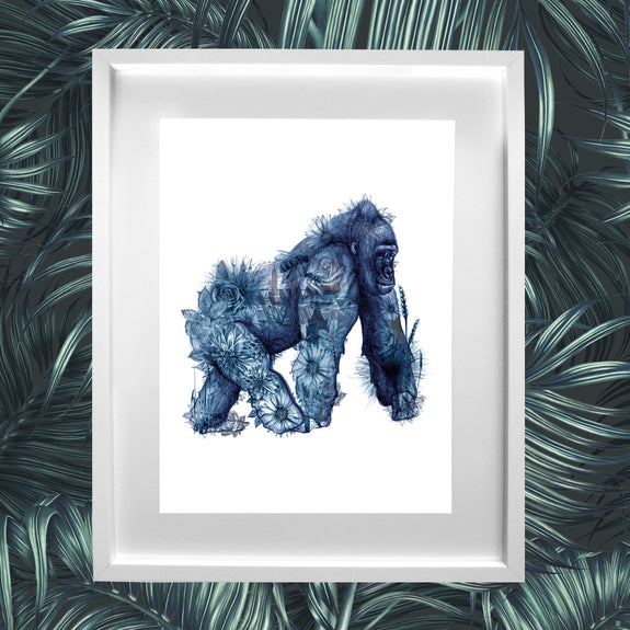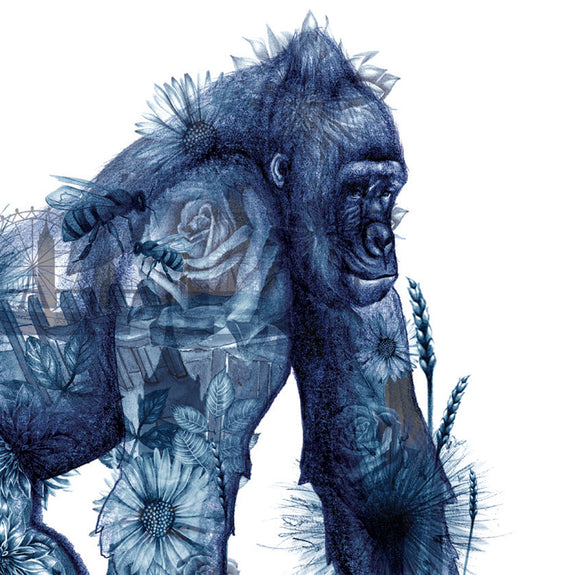 This design captures the fascinating beauty of the intelligent African Gorilla. This hand drawn illustration combines this beautiful animal with detailed flowers, foliage and plants, creating a design completely inspired by our natural world. Our Gorilla art print forms part of an exclusive collection for ZSL London Zoo, where we worked with the team to create a series of illustrations completely inspired by the animals at the zoo. ZSL are an inspirational charity and are renowned for their conservation work across the world so having the opportunity to work with the ZSL team was a dream come true! Check out our collaboration with London Zoo.