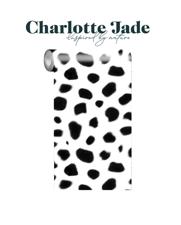 Bring your interiors to life with luxury Charlotte Jade Wallpaper. One of our most intricate patterns to date, our Dalmatian print captures every single hair stroke in a beautifully distinctive design which really hits the spot! This gorgeous monochrome wallpaper is perfect for creating a striking feature wall that can be paired with a whole range of colours and interior textures. Our luxury wallpaper comes from FSC registered suppliers, and is printed with HP Latex eco-friendly water-based inks on a non-woven substrate.