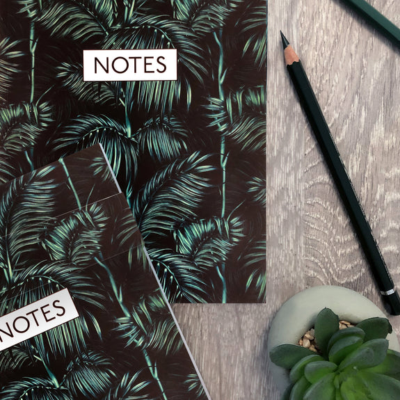Grab one of our exclusive, luxury notebooks, digitally printed in one of our most popular hand drawn pattern designs Balearic Palm. Our striking leafy pattern is inspired by the stunning Balearic Islands and combines two classic interior trends: gorgeous botanicals and dark inky hues. Each notebook has 120 pages of plain paper, great for taking notes, jotting down those creative ideas or sketching and doodling. Our beautiful notebooks are a great addition to your stationery set or make the perfect cute gift idea!