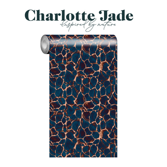 Bring your interiors to life with luxury Charlotte Jade Wallpaper. We’ve reinvented the giant patches of a Giraffe’s hide with this unique pattern, replacing the distinctive brown and golden tones with vibrant blues and warm copper. As with our Leopard and Zebra patterns, the intricate detail of every hair stroke gives this design extra texture and depth. There’s lots of potential to create a truly special interior space with this distinctive Giraffe inspired design. Our luxury wallpaper comes from FSC registered suppliers, and is printed with HP Latex eco-friendly water-based inks on a non-woven substrate.