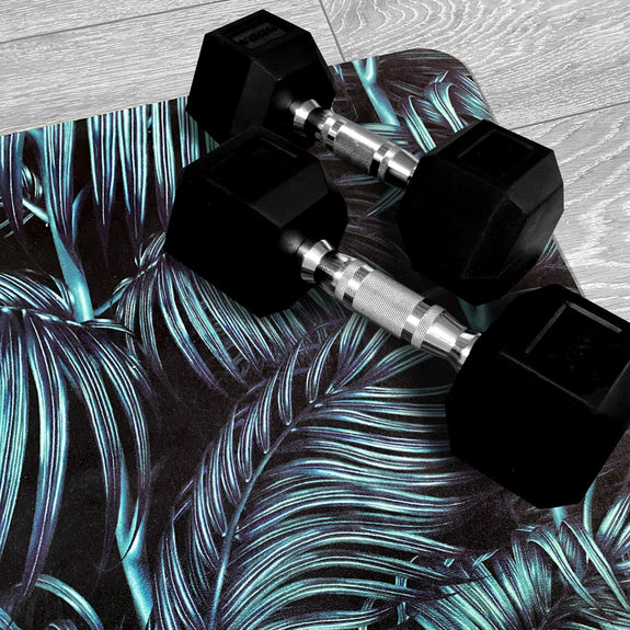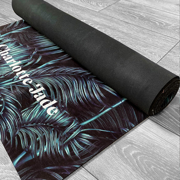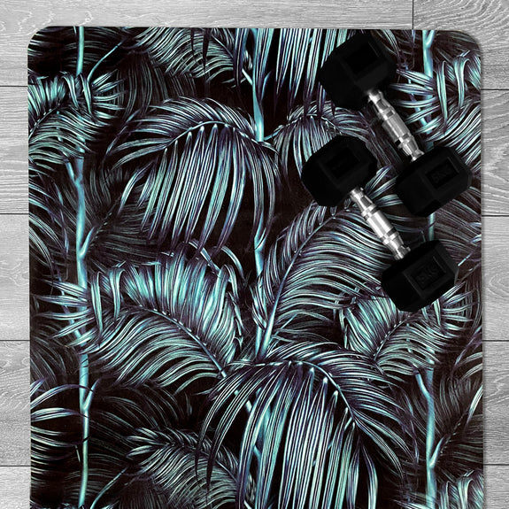 Workout in style with our Balearic Palm print exercise mat, perfect for those calming Yoga classes or crazy HIIT blasts. Paired with a handy shoulder strap, these exercise mats are perfect for use at home or in the gym. Our Balearic Palm pattern is inspired by the stunning Balearic Islands, combining  dark inky hues with gorgeous tropical botanicals combines style with nature in this absolute must have fitness essential.