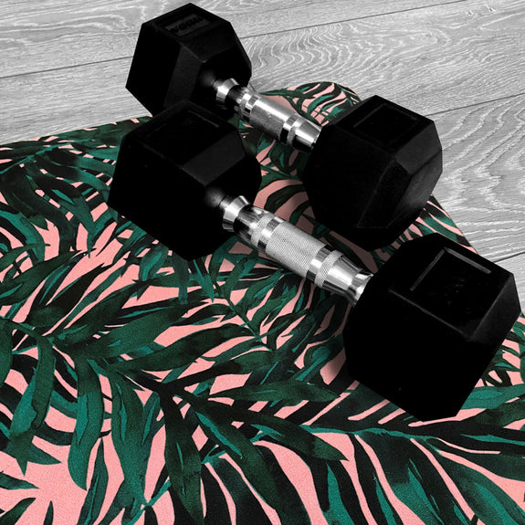 Workout in style with our Botanical Palm print exercise mat, perfect for those calming Yoga classes or crazy HIIT blasts. Paired with a handy shoulder strap, these exercise mats are perfect for use at home or in the gym. Our Botanical Palm Living Coral pattern showcases a gorgeous pink and green colour palette and combines style with nature in this absolute must have fitness essential.