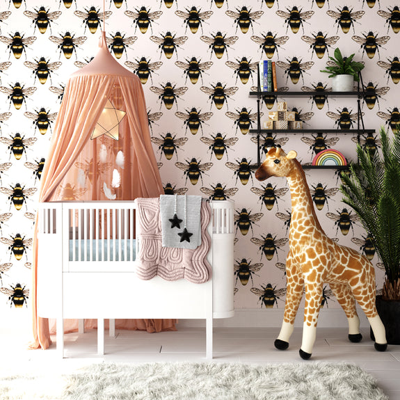 This intricately detailed and realistic pattern captures the beauty in our Honey Bees and celebrates the importance of one of the most important insects on our planet. The gorgeous dusty pink and playful bee composition creates a unique and stylish wallpaper which will certainly have you buzzing about your interiors!