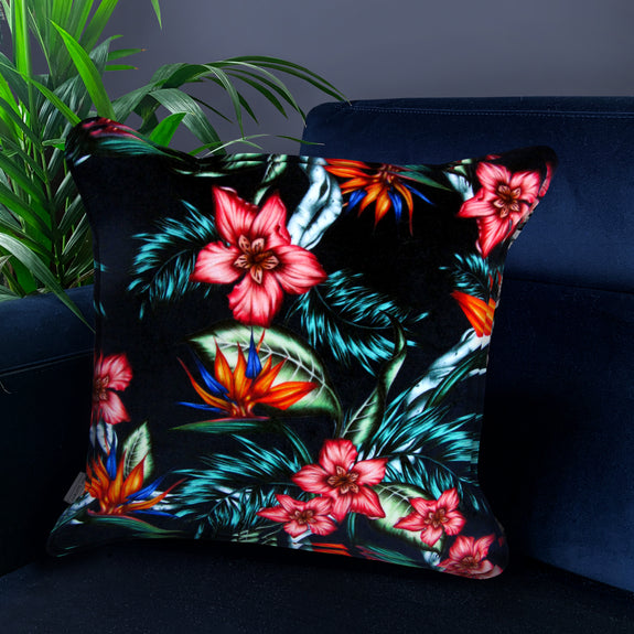 In this pattern we have interlaced exotic leaves with the fiery orange and bright blue Bird of Paradise flowers, and the warm apricot hues of the desert shrub Oleander. This creates a vibrantly coloured, dramatic and dynamic pattern. The combination of these beautiful plants and foliage gives depth and texture to a design that’s full of the shapes and colours of a tropical paradise.